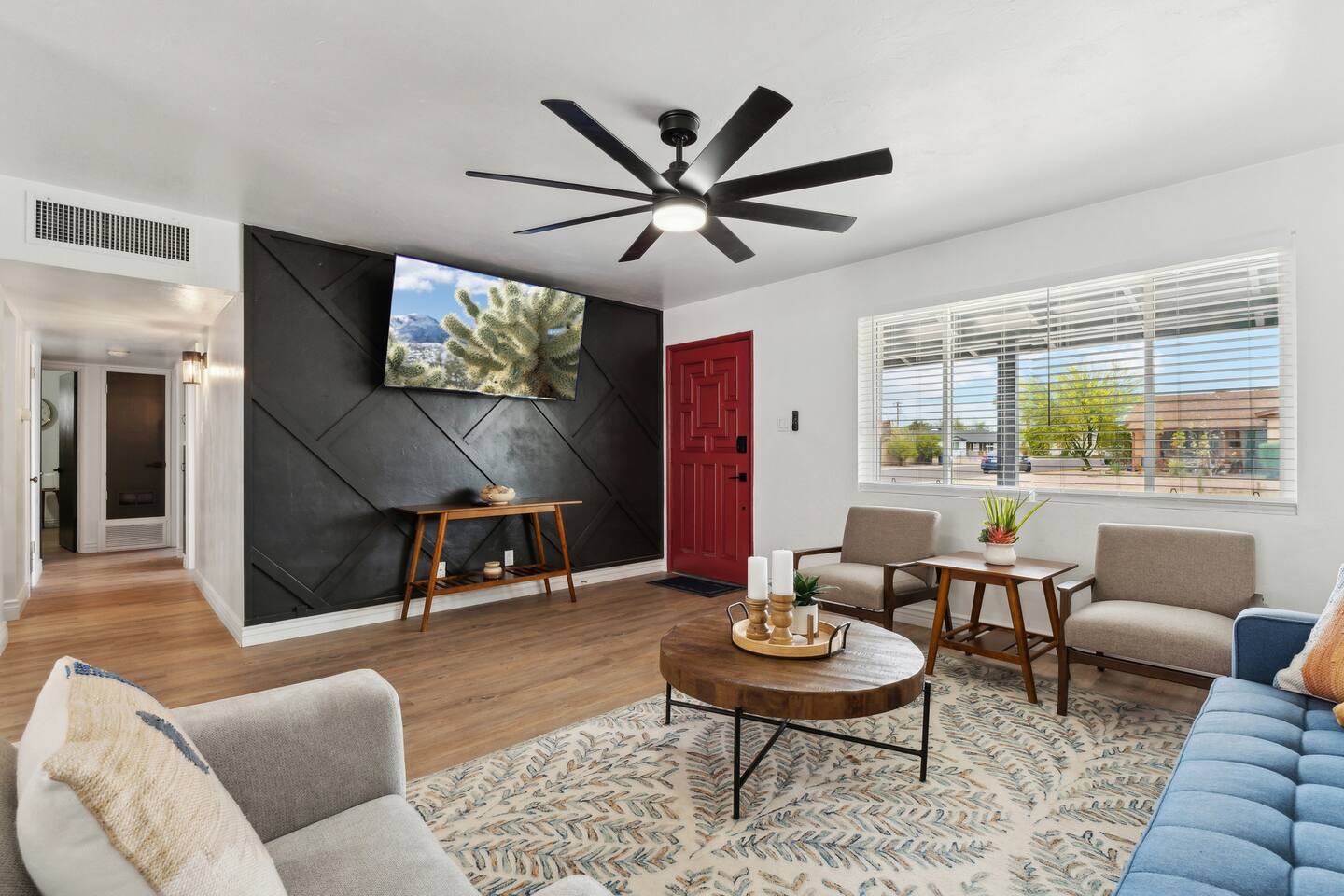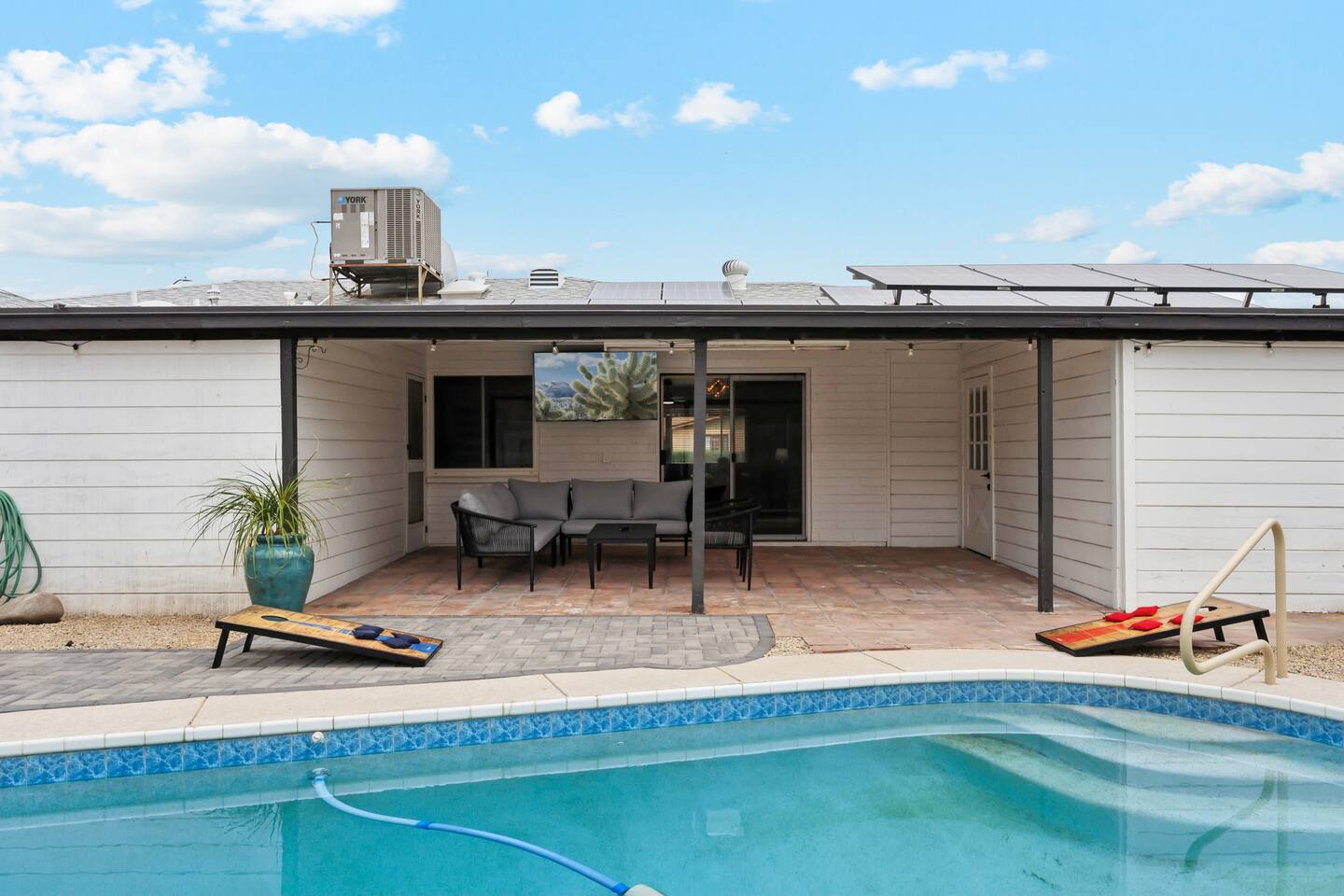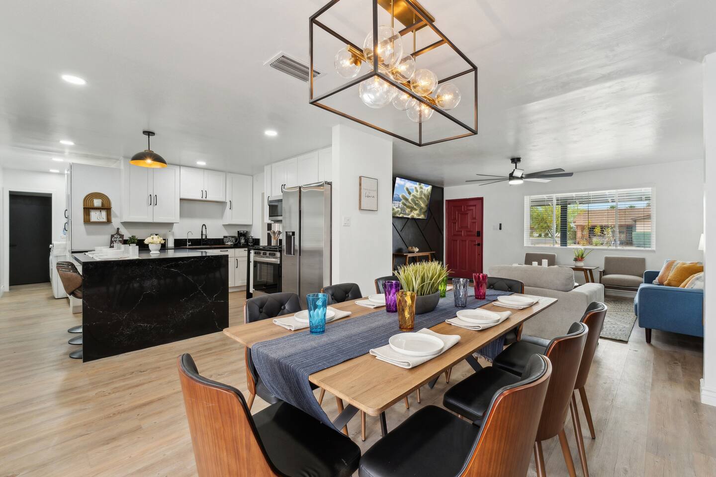 This beautifully remodeled 4-bedroom, 2-bath home is the perfect desert oasis for families, groups, and pet lovers alike. Ideally located in a quiet residential neighborhood, you’re just minutes from ASU, Old Town Scottsdale, spring training stadiums, and Phoenix Sky Harbor International Airport.