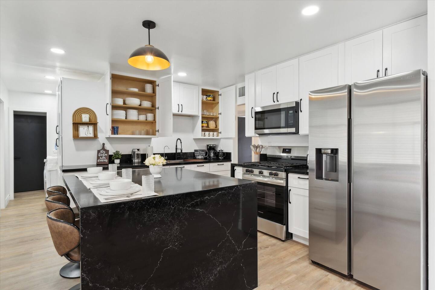 Guests have full access to the house except for the locked closets for the cleaner.